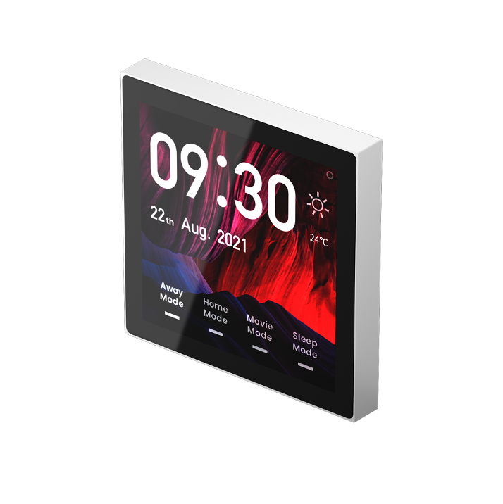 Nature Mini PRO is a smart home control panel installed at the intersec- tion of moving paths in your home. It has a 4-inch HD touch screen to provide you with a wide visual space and a comfortable interaction experience. With a powerful hardware platform to support multi-mode protocols and a customized operating system, it can transmit control signals to smart home devices and receive status feedback, thus realizing control functions of smart devices such as turning off lights and opening curtains.